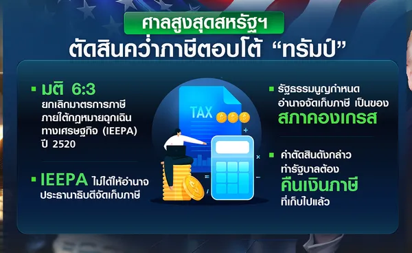 โลกกำลังเผชิญความไม่แน่นอนครั้งใหม่ หลังจากศาลสูงสุดสหรัฐฯ มีคำพิพากษาเมื่อวันศุกร์ที่ผ่านมา โดยมีมติ 6 ต่อ 3 ให้ยกเลิกมาตรการภาษีตอบโต้ (reciprocal tariff) ภายใต้กฎหมายฉุกเฉินทางเศรษฐกิจ (IEEPA) ปี 2520 (1977) เนื่องจากกฎหมาย IEEPA ไม่ได้ให้อำนาจประธานาธิบดีในการเรียกเก็บภาษี เพียงแต่ให้อำนาจในการควบคุมและจัดการธุรกรรม ขณะที่รัฐธรรมนูญสหรัฐฯ กำหนดชัดเจนว่าอำนาจการกำหนดและจัดเก็บภาษีเป็นของสภาคองเกรส ซึ่งการที่ประธานาธิบดีอ้างถึงอำนาจที่ส่งผลกระทบในวงกว้างจะต้องได้รับการมอบอำนาจจากสภาคองเกรสอย่างชัดเจน แต่ในกรณีนี้ไม่มีการมอบอำนาจอย่างชัดเจน