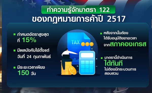 คำตัดสินของศาลไม่ได้ทำให้ประธานาธิบดีทรัมป์ยกเลิกความพยายามเรื่องภาษี ตรงกันข้ามเขาประกาศเก็บภาษีนำเข้าชั่วคราวในอัตราร้อยละ 10 ภายใต้มาตรา 122 ของกฎหมายการค้าปี 2517 หลังศาลมีคำพิพากษาสด ๆ ร้อน ๆ ก่อนที่ในวันต่อมาจะขยับเพิ่มเป็นร้อยละ 15 ซึ่งเป็นอัตราสูงสุดที่กฎหมายดังกล่าวอนุญาต และมาตรการภาษีล่าสุดนี้เริ่มมีผลบังคับใช้ตั้งแต่วันที่ 24 กุมภาพันธ์ ครอบคลุมสินค้านำเข้าจากทั่วโลก สามารถดำเนินการได้ทันที ไม่ต้องมีกระบวนการสอบสวน อย่างไรก็ตาม มาตรการนี้มีระยะเวลาเพียง 150 วัน หากจะขยายเวลาออกไปก็จะต้องได้รับการอนุมัติจากสภาคองเกรส