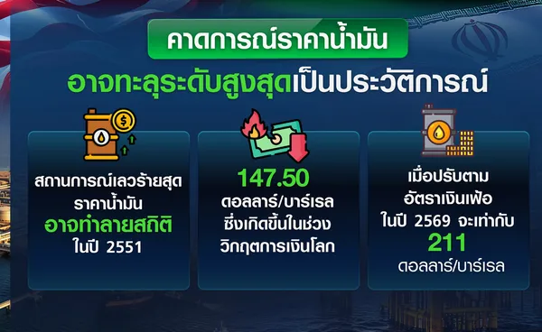 นอกเหนือจากการหยุดชะงักด้านการขนส่ง การสู้รบที่รุนแรงขึ้นอาจบีบให้ประเทศในตะวันออกกลางต้องปิดบ่อน้ำมัน ซึ่งจะทำให้เกิดวิกฤตพลังงานครั้งใหญ่สุด และทำให้ราคาน้ำมันพุ่งสูงขึ้นมาก กระทบต่อภาคครัวเรือนและภาคธุรกิจเป็นระยะเวลานาน “เดอะ การ์เดียน” อ้างความเห็นนักวิเคราะห์หลายรายที่มองว่า ในสถานการณ์เลวร้ายสุด ราคาน้ำมันอาจทะลุระดับสูงสุดเป็นประวัติการณ์ที่เคยแตะ 147.50 ดอลลาร์ต่อบาร์เรล เมื่อปี 2551 ซึ่งเป็นช่วงที่เกิดวิกฤตการเงินโลก ซึ่งเมื่อปรับตามอัตราเงินเฟ้อในปี 2569 จะมีราคาเท่ากับ 211 ดอลลาร์ต่อบาร์เรล