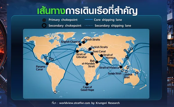 3) ภาวะชะงักงันด้านระบบโลจิสติกส์ (Logistics Disruptions) การปิดเส้นทางยุทธศาสตร์ในตะวันออกกลางไม่เพียงแต่ส่งผลกระทบด้านพลังงาน แต่ยังสร้างอุปสรรคสำคัญต่อการค้าโลก โดยเฉพาะการขนส่งสินค้าทางเรือผ่านคอนเทนเนอร์ ซึ่งมีสัดส่วนสูงถึง 11% ของการค้าโลก หรือราว 26 ล้านตู้ต่อปีที่ต้องผ่านภูมิภาคนี้