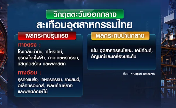 โดยอุตสาหกรรมที่ได้รับผลกระทบรุนแรง ในส่วนของอุตสาหกรรมที่ได้รับผลกระทบทางตรง ได้แก่ อุตสาหกรรมโรงกลั่นน้ำมันและปิโตรเคมี รวมถึงธุรกิจโรงไฟฟ้าที่เผชิญกับการขาดแคลนวัตถุดิบ รวมถึงอุตสาหกรรมที่พึ่งพาปัจจัยการผลิตจากตะวันออกกลางในสัดส่วนสูง โดยเฉพาะอุตสาหกรรมที่ใช้พลังงานเข้มข้น ภาคเกษตรกรรม วัสดุก่อสร้าง ตลอดจนอุตสาหกรรมที่พึ่งพาปิโตรเคมี อาทิ พลาสติก ซึ่งห่วงโซ่อุปทานที่หยุดชะงักอาจทำให้ต้นทุนการผลิตของอุตสาหกรรมเหล่านี้สูงขึ้น