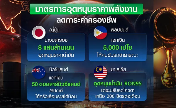 ในแง่มาตรการอุดหนุนราคาพลังงานและช่วยเหลือค่าครองชีพ รัฐบาลญี่ปุ่นนำงบสำรอง 8 แสนล้านเยน หรือราว 5 พันล้านดอลลาร์ เป็นกองทุนอุดหนุนราคาน้ำมันเบนซินให้อยู่ที่เฉลี่ย 170 เยนต่อลิตร ซึ่งมาตรการนี้จะมีค่าใช้จ่ายสูงถึง 3 แสนล้านเยนต่อเดือน