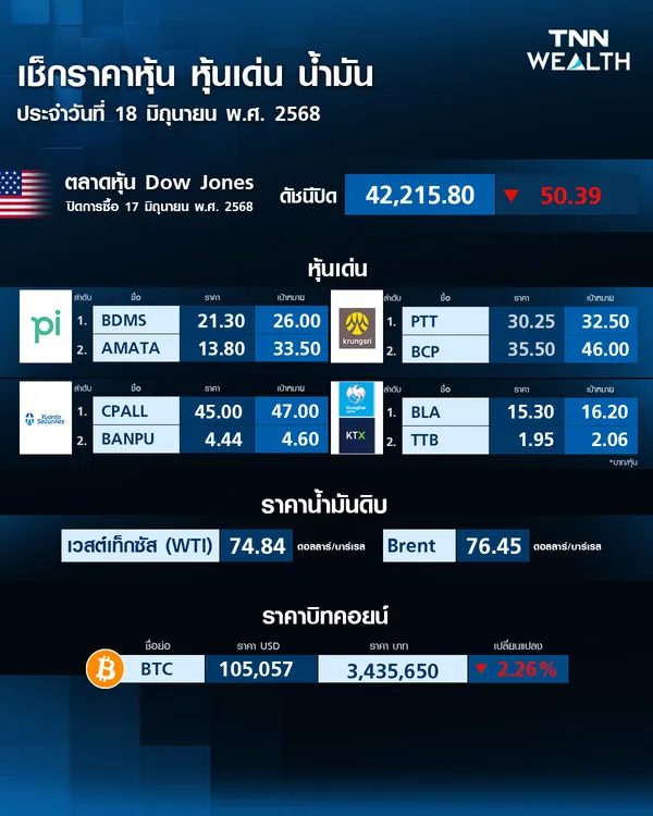 - ราคาบิตคอยน์วันนี้ (13 มิ.ย. 68) ปรับลง 4.41%