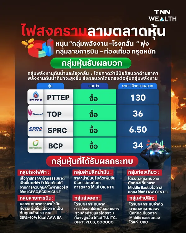 กลุ่มค้าปลีก : ได้รับผลกระทบจำกัดตามผลกระทบของนักท่องเที่ยวจาก Middle east ลดลง โดยมองว่าหุ้นที่ได้รับ negative sentiment มากที่สุดคือ CRC (ถือ/เป้า 27 บาท)