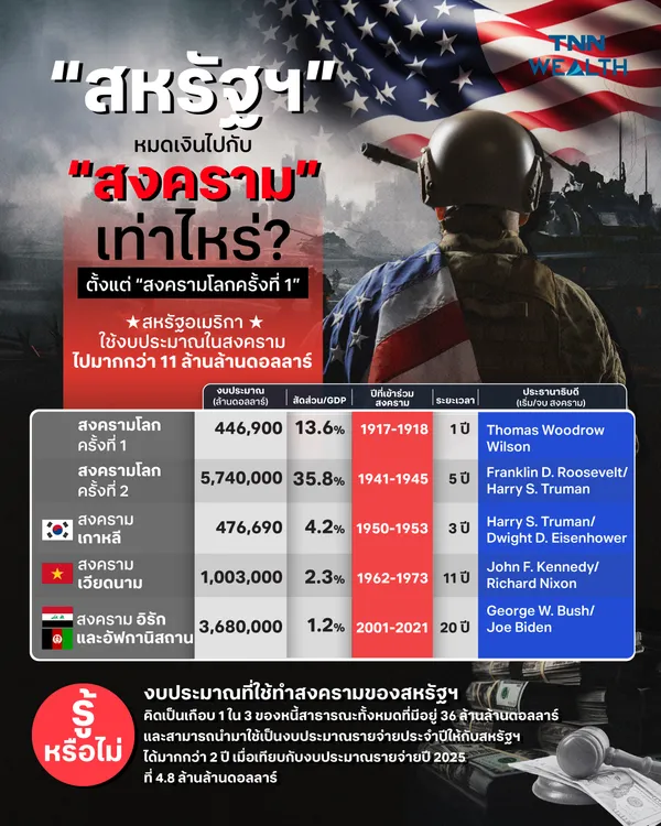 งบประมาณที่ใช้ทำสงครามของสหรัฐฯ คิดเป็นเกือบ 1 ใน 3 ของหนี้สาธารณะทั้งหมดที่มีอยู่ 36 ล้านล้านดอลลาร์ และสามารถนำมาใช้เป็นงบประมาณรายจ่ายประจำปีให้กับสหรัฐฯได้มากกว่า 2 ปี เมื่อเทียบกับงบประมาณรายจ่ายปี 2025 ที่ 4.8 ล้านล้านดอลลาร์