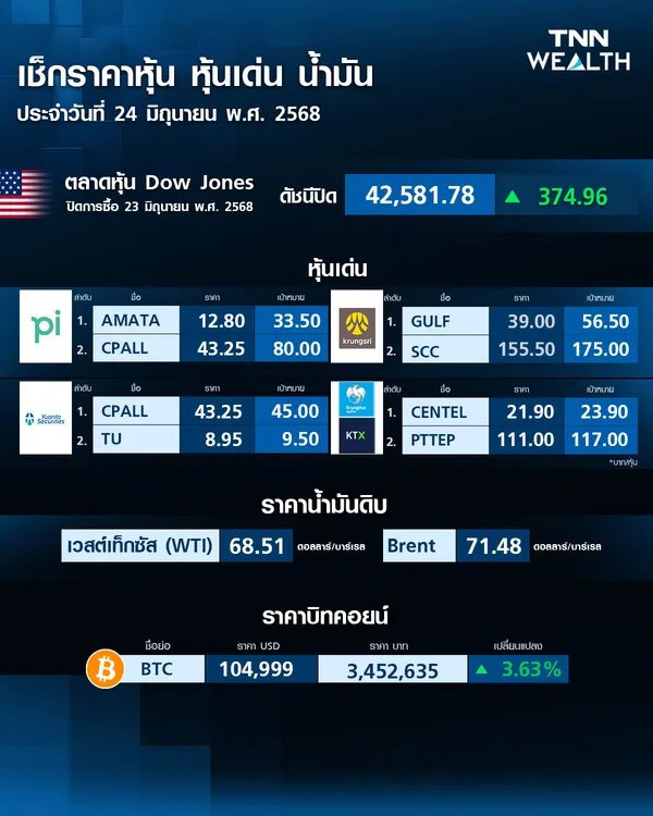 - ราคาบิตคอยน์วันนี้ (16 มิ.ย. 68) ปรับขึ้น 0.30%