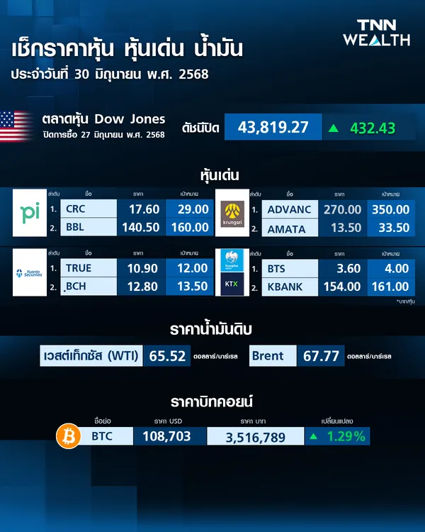 - ราคาบิตคอยน์วันนี้ (27 มิ.ย. 68) ปรับลง 0.68%