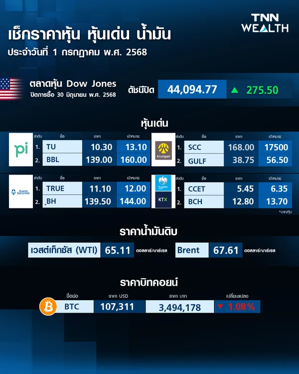 - ราคาบิตคอยน์วันนี้ (30 มิ.ย. 68) ขยับขึ้น 1.29%
