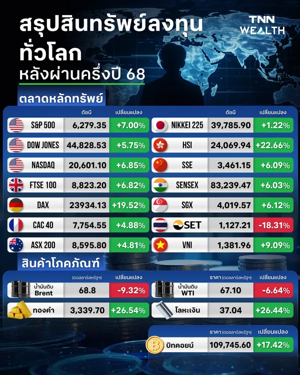 แล้วหลังจากผ่านครึ่งปีแรกของปี 2568 สินทรัพย์ลงทุนทั่วโลกเคลื่อนไหวเป็นอย่างไรบ้าง