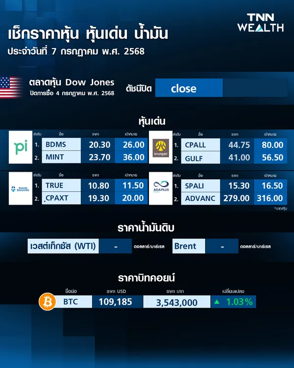 - ราคาบิตคอยน์วันนี้ (4 ก.ค. 68) ขยับขึ้น 0.65%