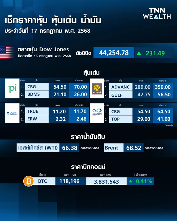 - ราคาบิตคอยน์วันนี้ (16 ก.ค. 68) ปรับลดลง 0.67%