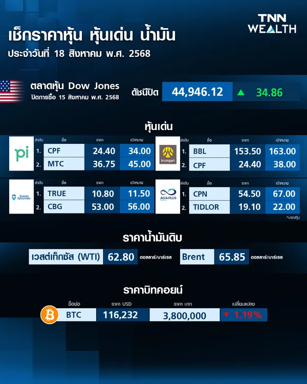 - ราคาบิตคอยน์วันนี้ (15 ส.ค. 68) ปรับลง 4.02%