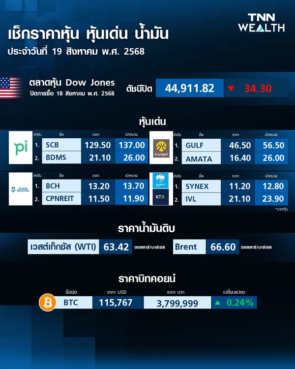 - ราคาบิตคอยน์วันนี้ (15 ส.ค. 68) ปรับลง 4.02%