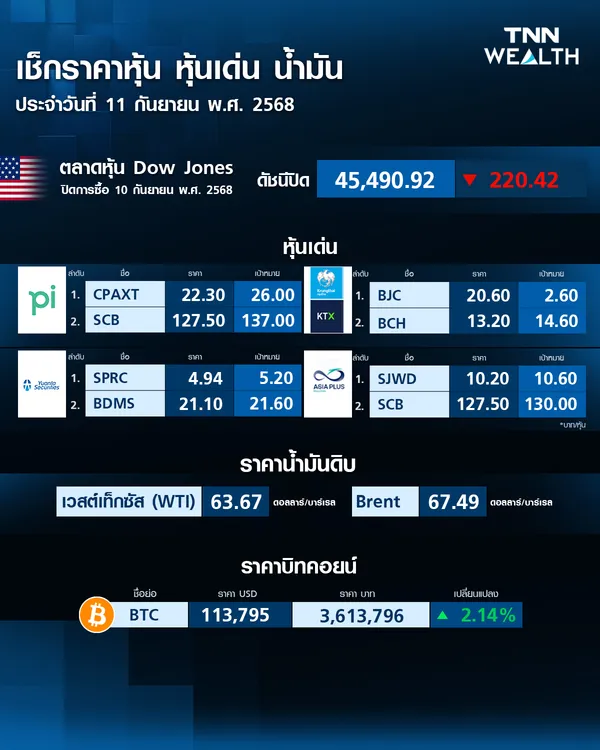 ราคาบิตคอยน์วันนี้ (11 ก.ย. 68) ขยับขึ้น 2.14% มาอยู่ที่ 113,795 เหรียญสหรัฐ หรือราว 3,613,796 บาท ข้อมูลเมื่อ 9.18 น.