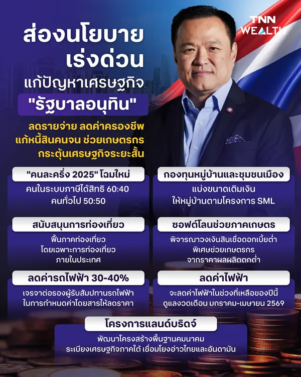 เปิดนโยบายเร่งด่วน "แก้เศรษฐกิจไทย" รัฐบาลอนุทิน