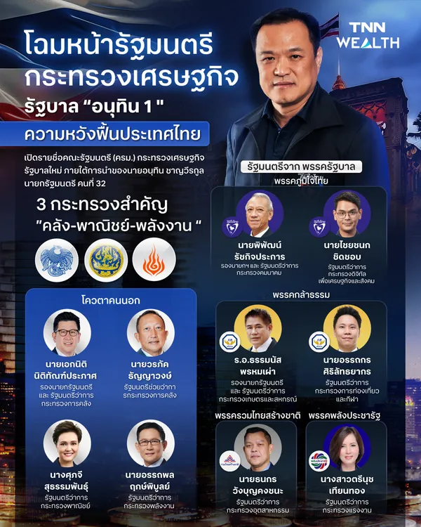 เปิดรายชื่อ และโฉมหน้า "รัฐมนตรีเศรษฐกิจ" รัฐบาล "อนุทิน 1"