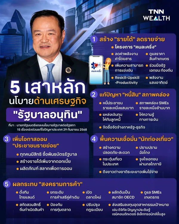 เจาะ 5 เสาหลัก นโยบายด้านเศรษฐกิจ "รัฐบาลอนุทิน"