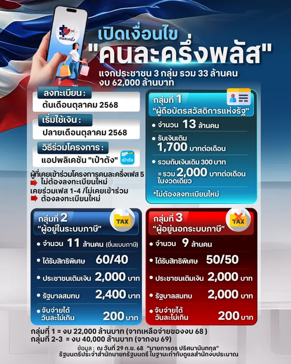ใครบ้างได้สิทธิ คนละครึ่งพลัส 2025 รวม 33 ล้านคน รับสูงสุด 2,400 บาท