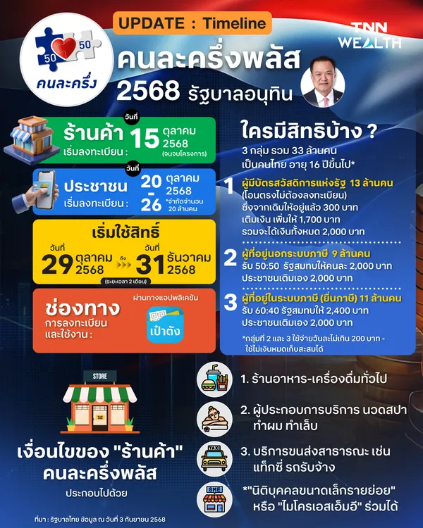 UPDATE : Timeline "คนละครึ่งพลัส" 2568 รัฐบาลอนุทิน