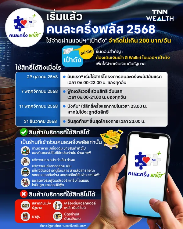 - คนละครึ่ง 2568 เปิดใช้สิทธิพรุ่งนี้ 6 โมงเช้า ร้านค้าเข้าร่วมแล้วกว่า 5.6 แสนราย