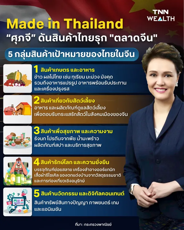 ภายใต้นโยบายใหม่ของ “ศุภจี สุธรรมพันธุ์” การรุกตลาดจีนไม่ได้เป็นเพียงการเพิ่มยอดส่งออกระยะสั้น แต่เป็นการวางรากฐานระยะยาว เพื่อให้ไทยเป็นส่วนหนึ่งของห่วงโซ่มูลค่าในตลาดจีน ซึ่งกำลังเปลี่ยนผ่านสู่ยุคเศรษฐกิจสีเขียวและนวัตกรรม โดยมีเป้าหมายสูงสุดคือ การให้สินค้าไทยก้าวขึ้นเป็น “สินค้าพรีเมียมของเอเชีย” ที่ตอบโจทย์ทั้งคุณภาพ ความยั่งยืน และไลฟ์สไตล์ของผู้บริโภคจีนยุคใหม่