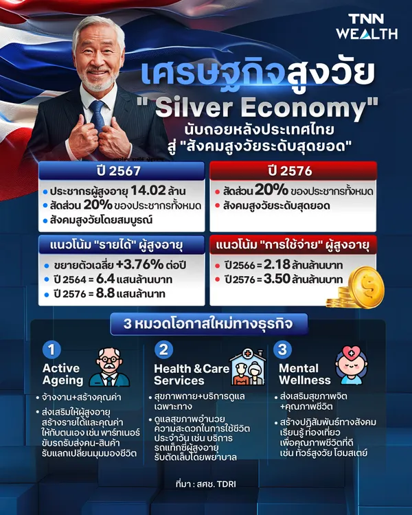 ปรากฏการณ์ดังกล่าวไม่ใช่เพียงความท้าทายด้านนโยบาย แต่กำลังกลายเป็นโอกาสสำคัญทางเศรษฐกิจ ภายใต้ “เศรษฐกิจสูงวัย (Silver Economy)” ซึ่งสะท้อนถึงบทบาทของผู้สูงอายุทั้งในฐานะผู้บริโภคที่มีกำลังซื้อสูง และแรงงานที่ยังคงมีคุณค่าในตลาดแรงงานไทย