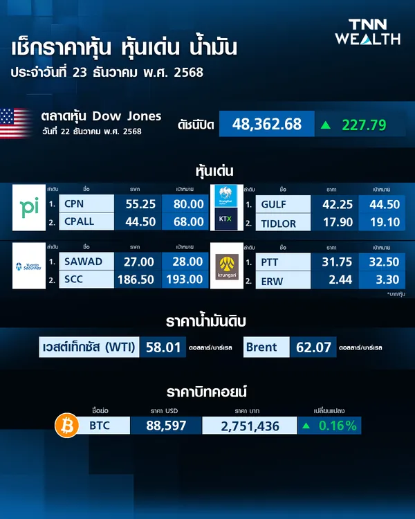 ราคาบิตคอยน์วันนี้ (23 ธ.ค. 68) ปรับขึ้น 0.16%