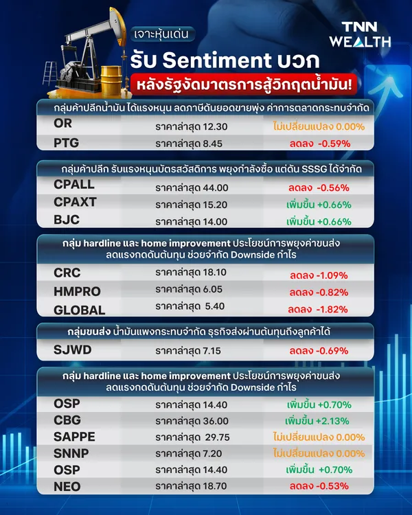 ส่วนในมุมมองตลาดทุน นักวิเคราะห์ประเมินว่ามาตรการดังกล่าวอาจช่วยสร้าง Sentiment เชิงบวกต่อหุ้นบางกลุ่ม โดยเฉพาะกลุ่มพลังงานต้นน้ำและโรงกลั่นที่มีแนวโน้มได้รับอานิสงส์จากทิศทางราคาน้ำมันที่ยังอยู่ในระดับสูง ขณะที่นักลงทุนยังคงต้องติดตามสถานการณ์ในตะวันออกกลางอย่างใกล้ชิด เนื่องจากเป็นปัจจัยสำคัญที่กำหนดทิศทางราคาพลังงานโลกในระยะต่อไป