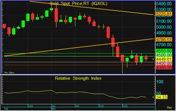 วิเคราะห์ราคาทอง ราคาทองโลกปรับตัวขึ้นทดสอบแนวต้านบริเวณ 4,500 และ 4,550 ดอลลาร์ และมีการย่อตัวลง จึงประเมินว่า ทองโลกมีแนวโน้มปรับตัวลงทดสอบแนวรับที่ 4,400 ดอลลาร์ และอาจมีการฟื้นตัวขึ้นอีกครั้งในภายหลัง แต่หากทองโลกหลุดแนวรับถัดไปที่ 4,350 ดอลลาร์ ทองโลกอาจปรับฐานลงต่อเนื่อง