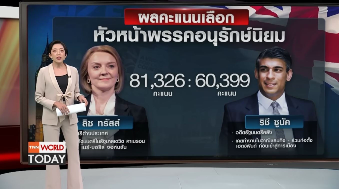 เมื่อช่วงค่ำวานนี้ มีการประกาศผลการเลือกหัวหน้าพรรคอนุรักษนิยมคนใหม่ หลังจากการหาเสียงต่อเนื่องมานานกว่า 2 เดือน ซึ่งปรากฏว่า "ลิซ ทรัสส์" รัฐมนตรีต่างประเทศ ได้รับเลือกจากสมาชิกพรรคอนุรักษ์นิยมด้วยคะแนนเสียง 81,326 คะแนน เอาชนะ "ริชี ซูหนัก" รัฐมนตรีคลัง ที่ได้คะแนนเสียง 60,399 คะแนน