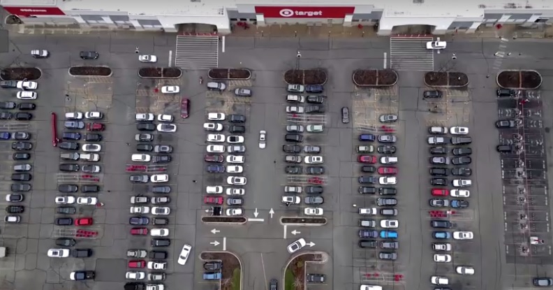 ภาพจากโดรนอากาศยานไร้คนขับในนครชิคาโก รัฐอิลลินอยส์ สหรัฐฯ เมื่อวานนี้ (21 พ.ย.) เห็นลานจอดรถของห้าง ทาร์เก็ต คลาคล่ำไปด้วยรถของลูกค้าแน่นขนัดลานจอด ที่ต่างแห่กันมาจับจ่ายซื้อสินค้าที่ห้างแห่งนี้ หลังทางห้างเริ่มเทศกาลลดแลกแจกแถมครั้งใหญ่ส่งท้ายปีที่เกิดขึ้นเป็นประจำทุกปี