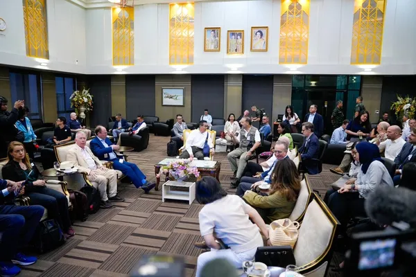 ทั้งนี้ ก่อนออกเดินทางกระทรวการต่างประเทศ ได้บรรยายข้อมูลก่อนออกเดินทาง ให้แก่คณะ โดยนายมาริษ กล่าวกับคณะทูตว่า ขอบคุณที่ร่วมเดินทาง และหวังว่าทุกท่านจะได้รับข้อมูลด้วยตาตัวเองถึงสถานการณ์ที่เกิดขึ้น ก่อนที่จะเดินทางออกไปยัง จ.ศรีสะเกษ โดยจุดแรกจะพาคณะเดินทางไปยัง โรงเรียนภูมิซรอลวิทยา ต.เสาธงชัย อ.กันทรลักษณ์ เพื่อรับฟังบรรยายสรุปจากกองทัพบก กระทรวงการต่างประเทศ และกระทรวงมหาดไทย