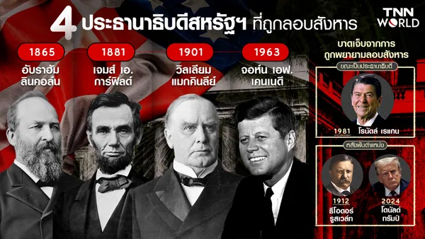สหรัฐฯ เคยเผชิญการลอบสังหารประธานาธิบดีในตำแหน่งถึง 4 คน คือ