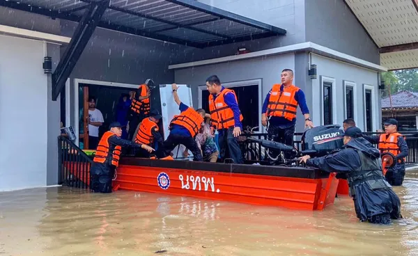 CNA รายงานสถานการณ์ล่าสุดว่า ระดับน้ำท่วมสูงสุด 2 เมตร หลังเกิดฝนตกน้ำท่วมหนัก 10 จังหวัดภาคใต้ของไทย น้ำท่วมถนนสายหลักหลายสาย ทำให้ทางขาด และระดับน้ำยังคงเพิ่มขึ้น