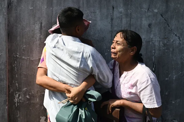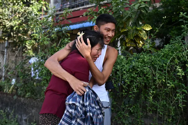ครอบครัวต่างเข้าโผกอดญาติที่ถูกปล่อยตัวจากเรือนจำอินเส่ง ในนครย่างกุ้ง เมืองหลวงด้านเศรษฐกิจของเมียนมาในวันนี้ (27 พฤศจิกายน) หลังจากที่รัฐบาลทหารเมียนมาได้ประกาศอภัยโทษนักโทษการเมืองราว 3,085 คน