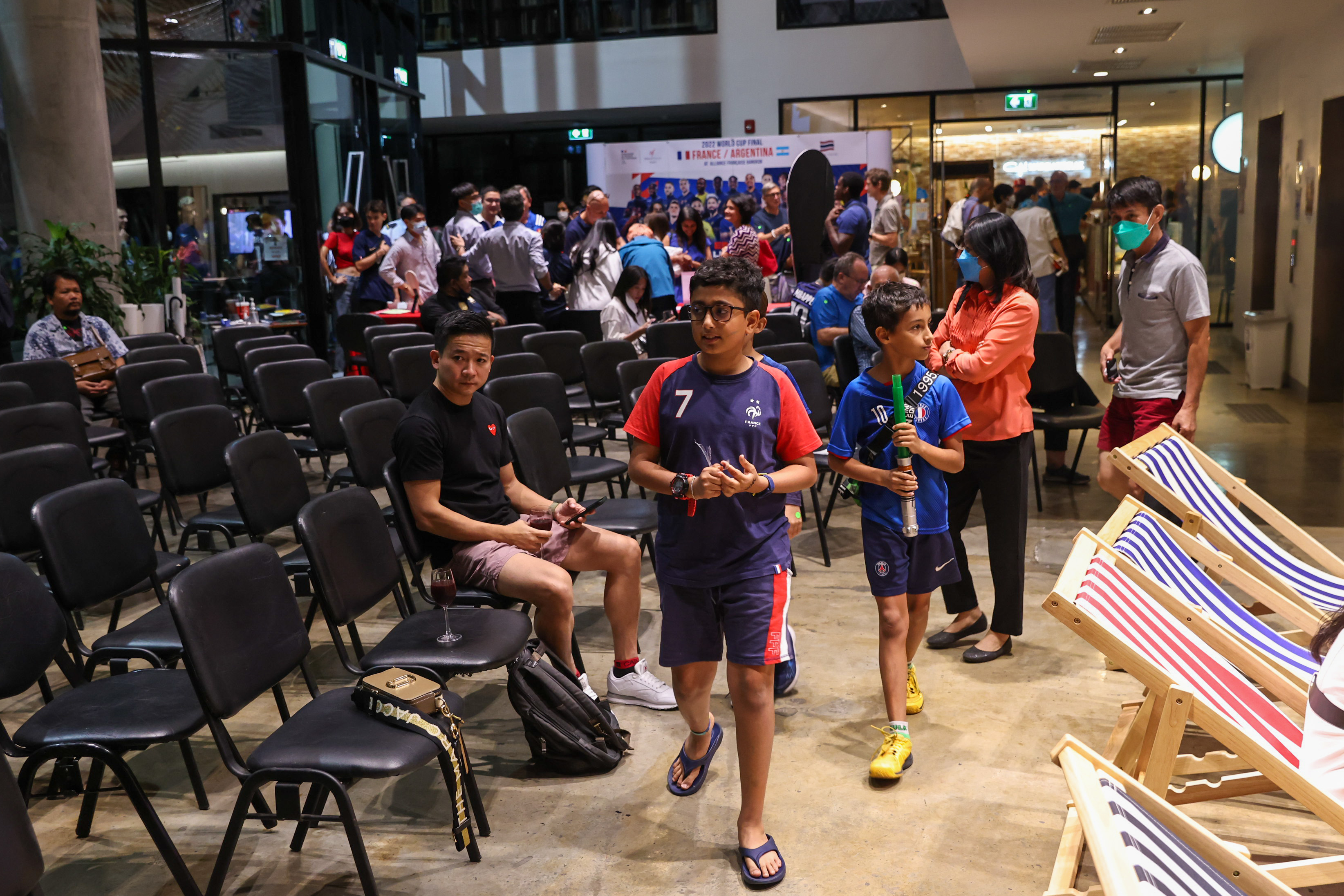 ซึ่งช่วงก่อนแข่งชาวฝรั่งเศสที่อาศัยในไทยและแฟนบอลของทั้ง 2 ทีม เริ่มทยอยเดินทางเข้าจับจองพื้นที่ในสมาคม พร้อมทั้งมีการเพ้นท์ลายธงชาติที่ตนเชียร์เพื่อสร้างสีสัน พร้อมร่วมลุ้นไปด้วยกันว่าใครจะเป็นแชมป์โลกสมัยที่ 3 ถ่ายทอดสดผ่านช่อง True4U , 7HD และ True Sports (วันที่ 18 ธ.ค.65)
